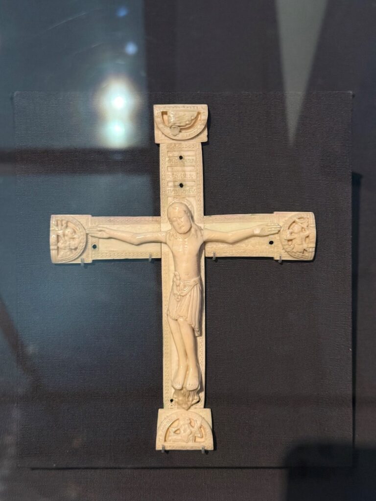 Già a partire dall’anno 1000 d.C., quando le coste della Groenlandia venivano colonizzate, mentre i trichechi erano quasi estinti in Islanda17, nell’Inghilterra meridionale si utilizzava l’avorio di tricheco per oggetti preziosi spesso prodotti in laboratori ecclesiastici. Nella cattedrale di Winchester si producevano crocifissi con avorio di tricheco18, così come se ne producevano nello stesso periodo a Essen in Germania come dimostrato dalla croce reliquiario nella collezione del Victoria and Albert Museum in cui il corpo di Cristo crocefisso è in avorio di tricheco scolpito con uno standard di altissima qualità19.